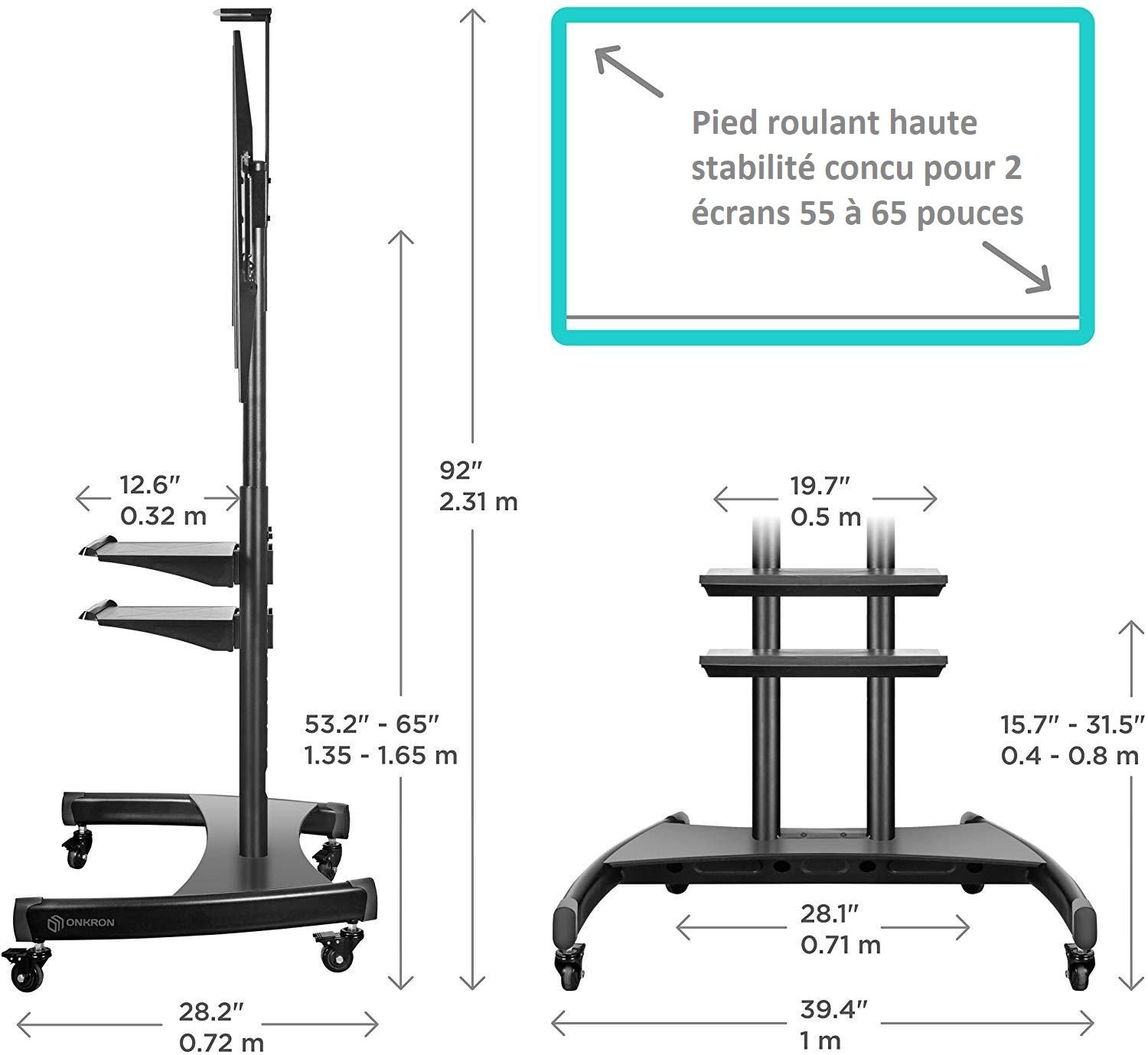 Support roulant inclinable avec 2 tablettes