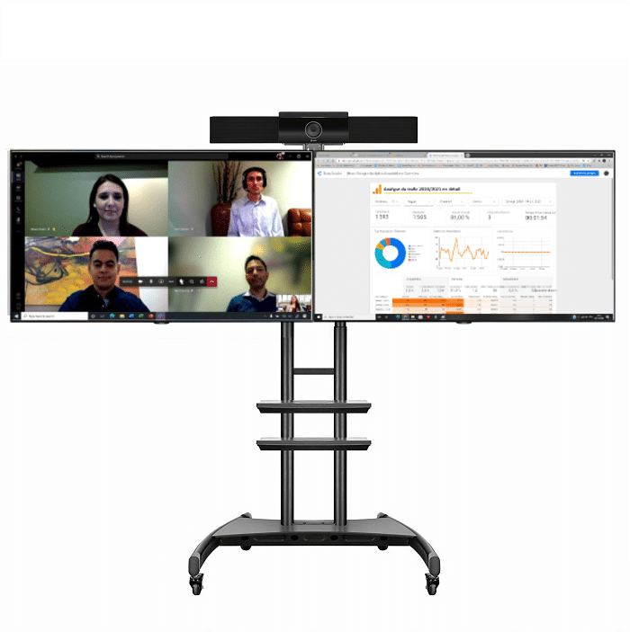 Kit visioconférence complet pour petite et moyenne salle de réunion. Barre vidéo UHD 4K, écran et pied roulant.